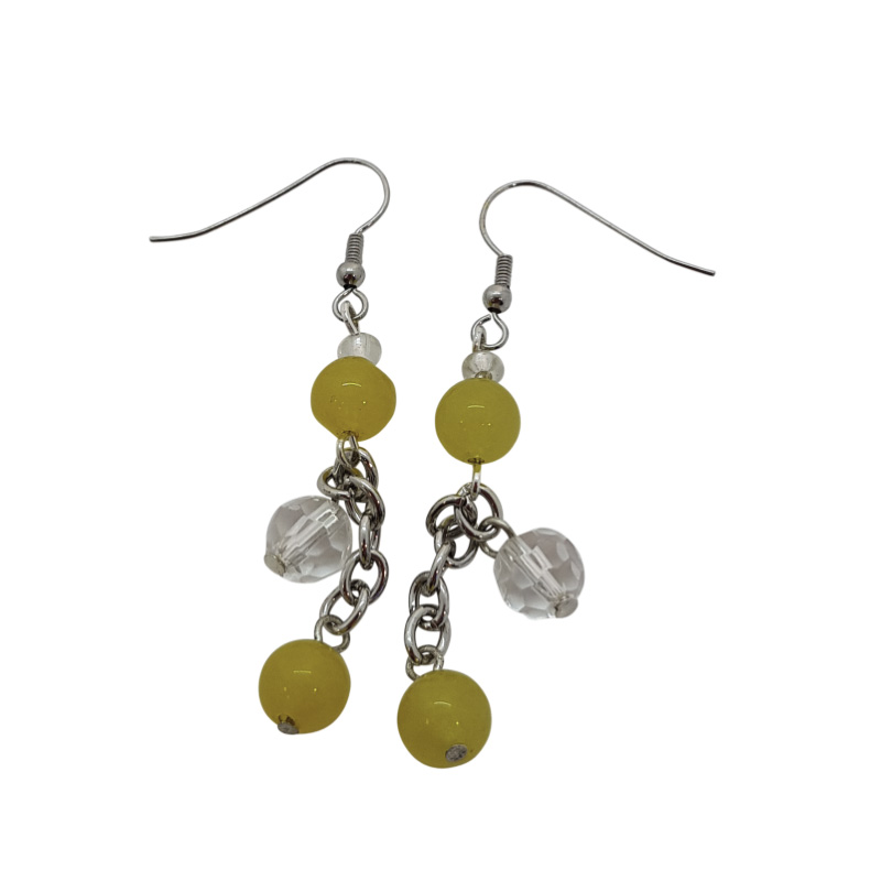 Örhänge med rundslipade gula stenar och en liten transparent kristall.
