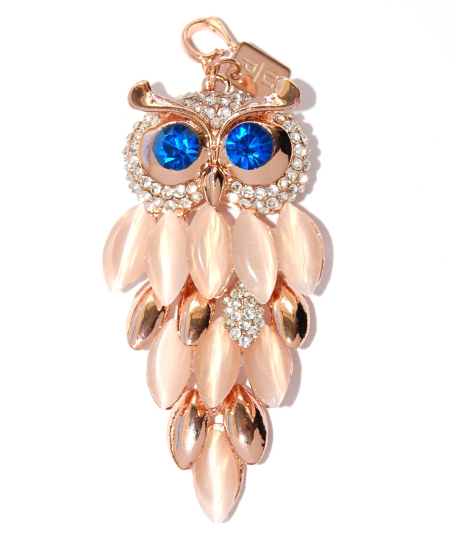 Läckert skimrande hänge med kornblå kristaller. Hake som öppnas utåt vilket gör att hänget även fungerar att använda på en rem. Pläterad med roséguld.