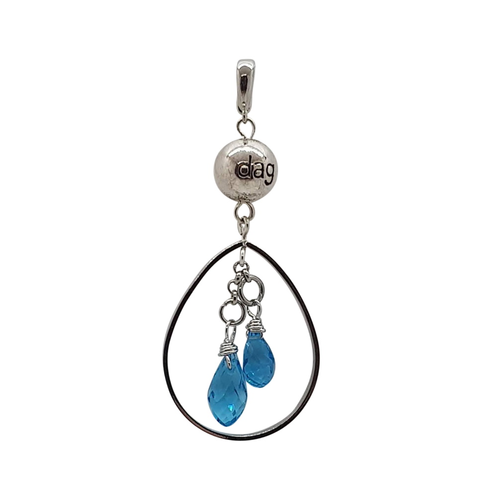 Stor, silverfärgad droppe med två fina turkosa kristalldroppar i. Häng i valfri länk eller rem! Snyggt till både långa och korta halsband.