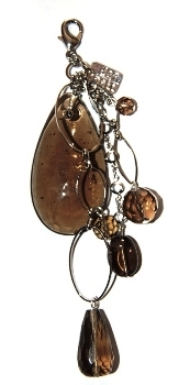 Hänge glasdroppe, grå/silver m karbinhake