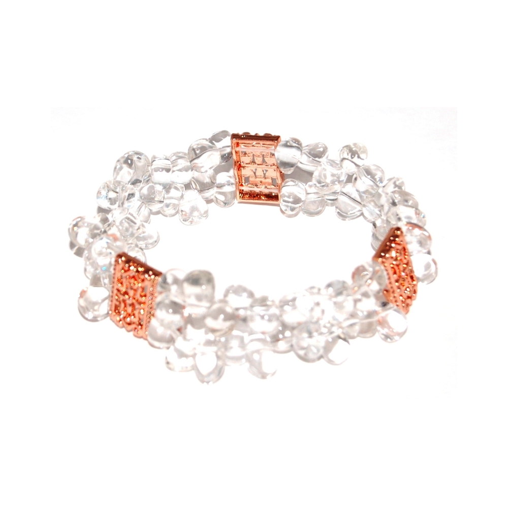 Härligt elastiskt armband i två rader med transparenta kristaller. Detaljer i roséguld.