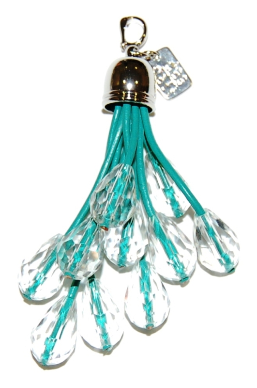Lädertofs med kristaller, grön