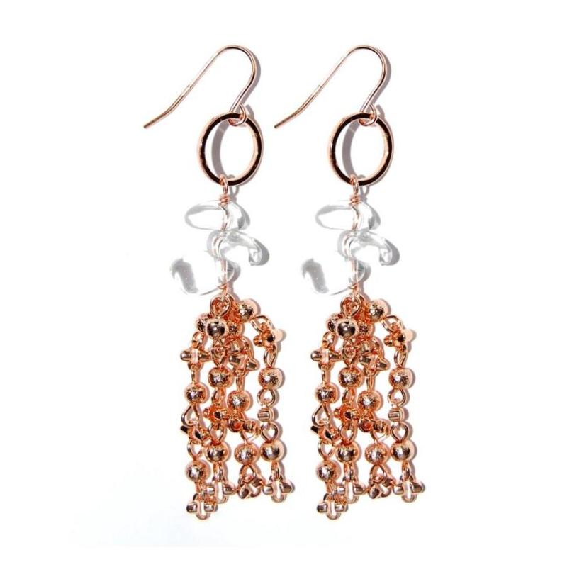 Stora maffiga, hängande örhängen med kristaller och kedjer, total längd ca 60 mm.