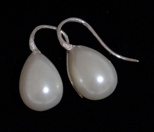Eleganta örhängen med en droppformad pärla på krok av äkta silver.