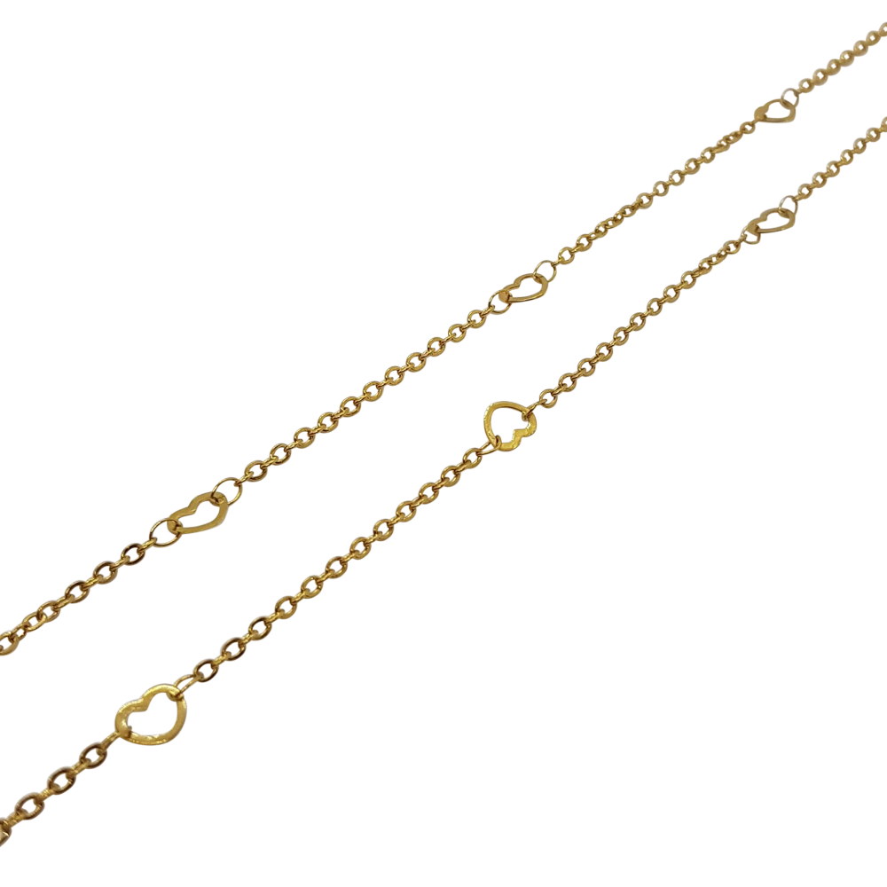 Guldpläterad stållänk med små söta hjärtan. Knäpp halsbandet i öglan eller i det sista hjärtat och komplettera med ett sött hänge!
