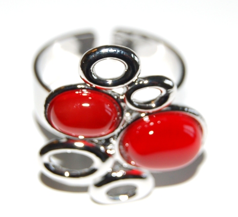 Ring med stenar och silver rin röd/silver